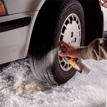 Winter-weary Scandinavians have been spraying sticky Tyre-Grip on their tires every winter since 1985 because it improves traction up to 300% on compressed snow and wet ice (especially when the temperature hovers near freezing). Tyre-Grip has been proven by the Norwegian State Institute of Technology! And this tire traction spray won't damage roads and driveways like chains and studs do. Tyre-Grip's organic resin "adhesive" also helps prevent ice and snow from accumulating in the treads, yet won't damage the tires, body paint or metal. A 16-oz. can of Tyre-Grip will spray 40 tires, and each application will last up to 50 miles on ice-, snow- and slush-covered roads. Keep this tire traction spray handy in every car trunk. Made in the USA.No air shipment.Buy 2 or more Tyre-Grips for only .99 each!Benefits of Tyre-Grip:This tire traction spray applies easily with just a push of the buttonTyre-Grip is made of all natural ingredients; no corrosive chemicals Tyre-Grip can also be used for motorbike and bicycle tires, as well as rubber-soled shoes